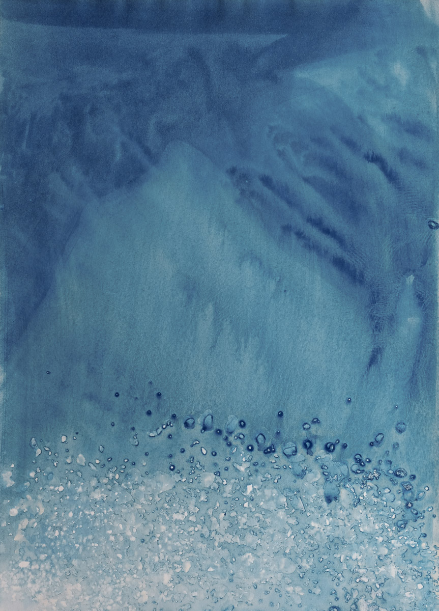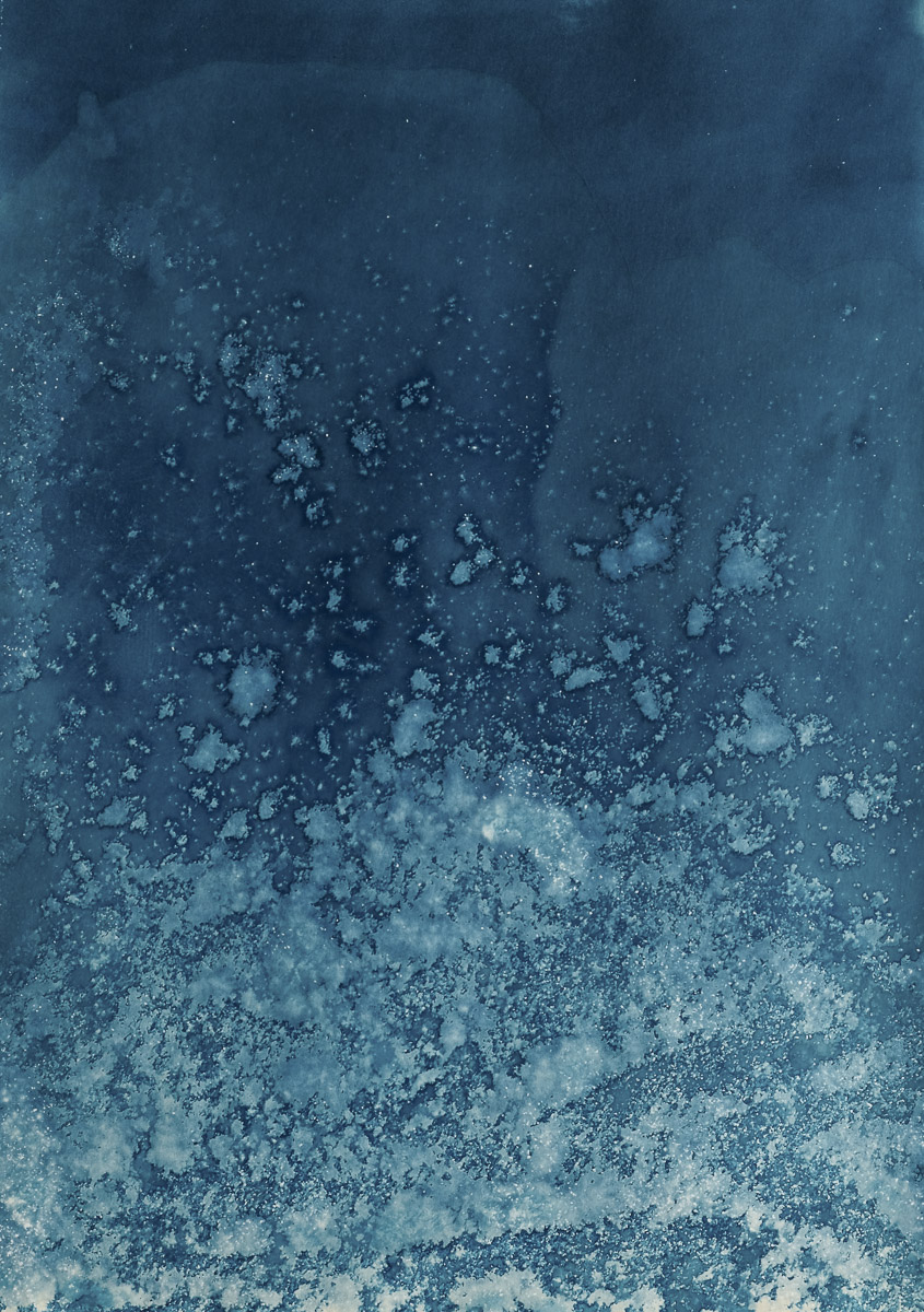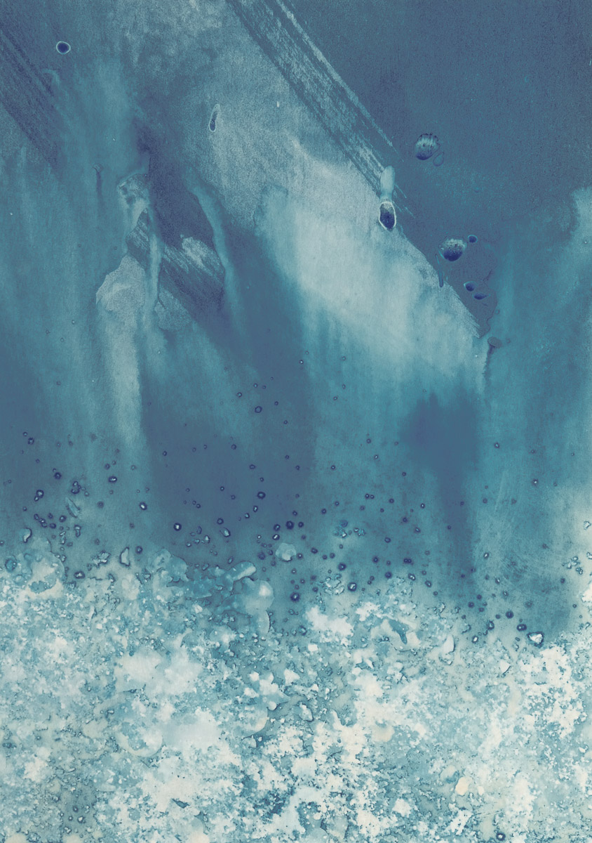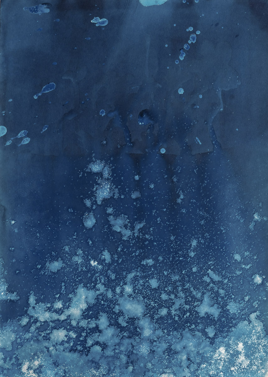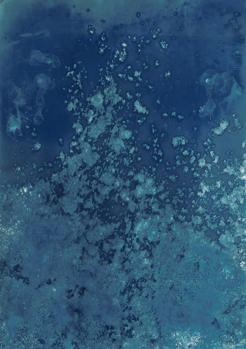 Turbulence derives from the Latin turbulentia, originated to describe the disorderly movement of a crowd and is commonly used to describe social or personal behaviour. Turbulence is also years or times characterised by disorder and agitation. But it also has a scientific meaning, we find it in every system where there are fluids in motion: the motion of clouds, ocean currents, waves, our breathing, the rise of cigarette smoke, the creation of hurricanes and many other natural and human phenomena. The climate works according to a system called ‘non-linear’ or ‘turbulent’, and the oceans behave in the same way. And we find it in these blue prints created by the waves and fixed by the sun’s rays.