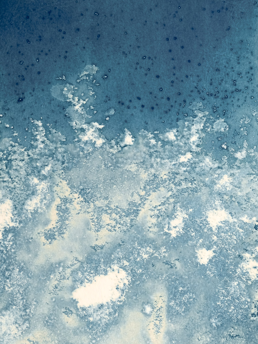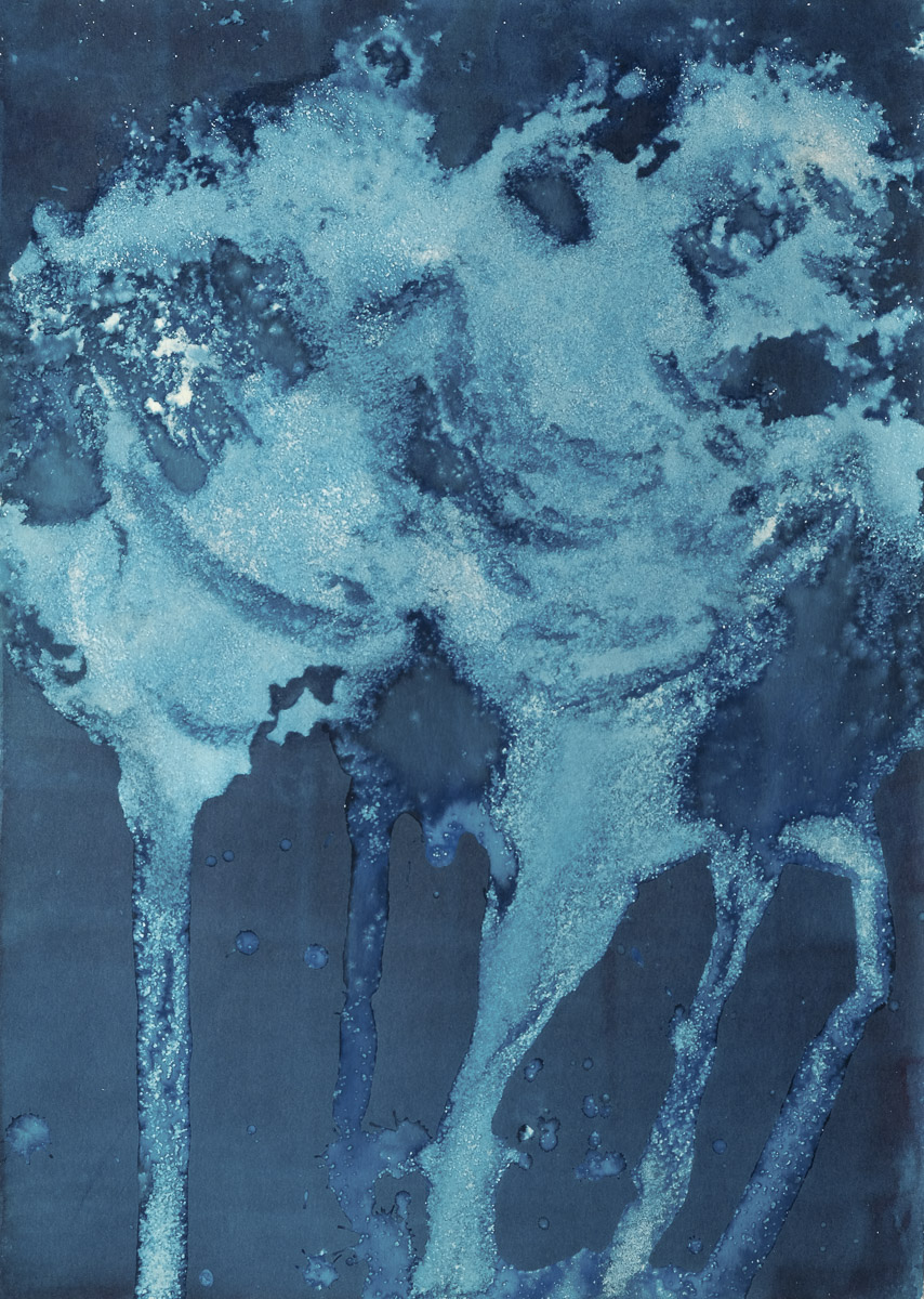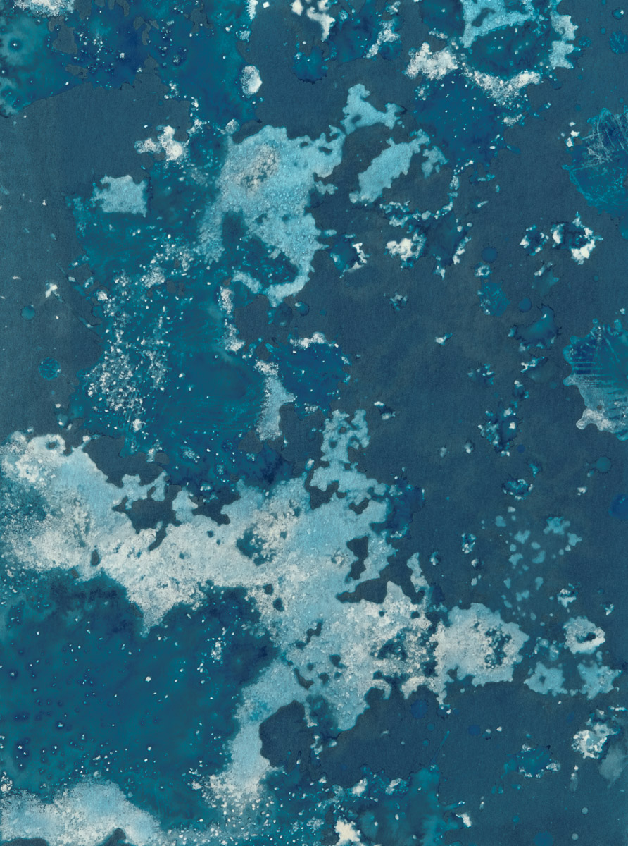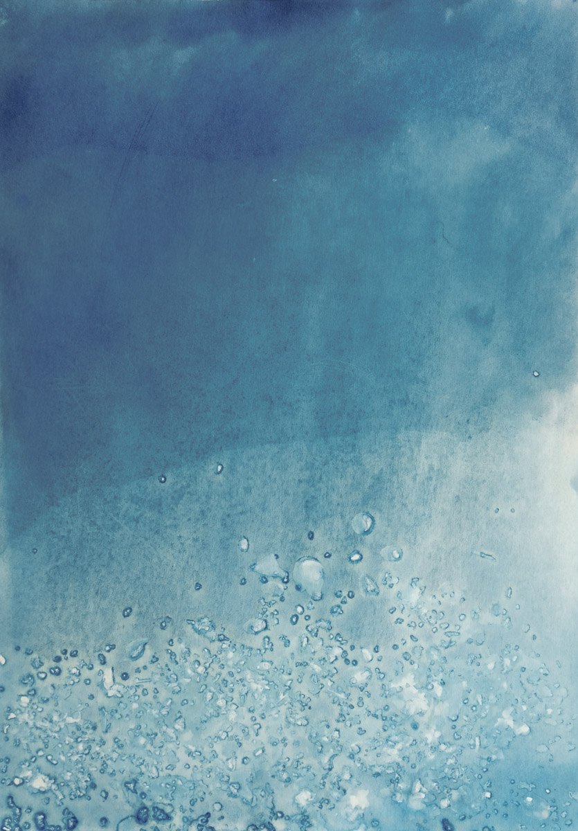 Turbulence derives from the Latin turbulentia, originated to describe the disorderly movement of a crowd and is commonly used to describe social or personal behaviour. Turbulence is also years or times characterised by disorder and agitation. But it also has a scientific meaning, we find it in every system where there are fluids in motion: the motion of clouds, ocean currents, waves, our breathing, the rise of cigarette smoke, the creation of hurricanes and many other natural and human phenomena. The climate works according to a system called ‘non-linear’ or ‘turbulent’, and the oceans behave in the same way. And we find it in these blue prints created by the waves and fixed by the sun’s rays.